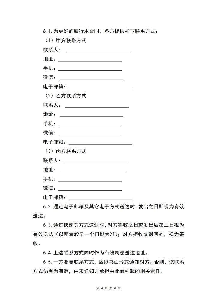 6.1.为更好的履行本合同,各方提供如下联系方式:
