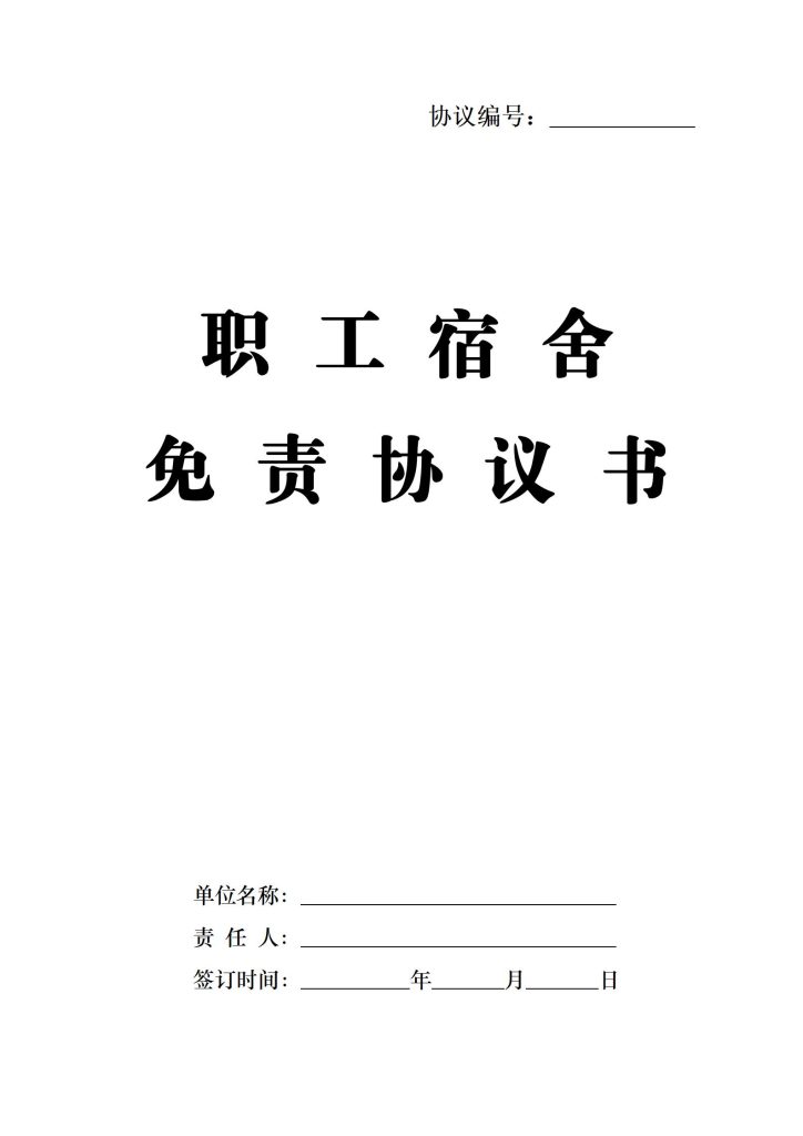 本合同模板为《职工宿舍免责协议书》,适用于用人单位给员工提供住宿时跟员工签署,以降低因提供宿舍而带来潜在风险。