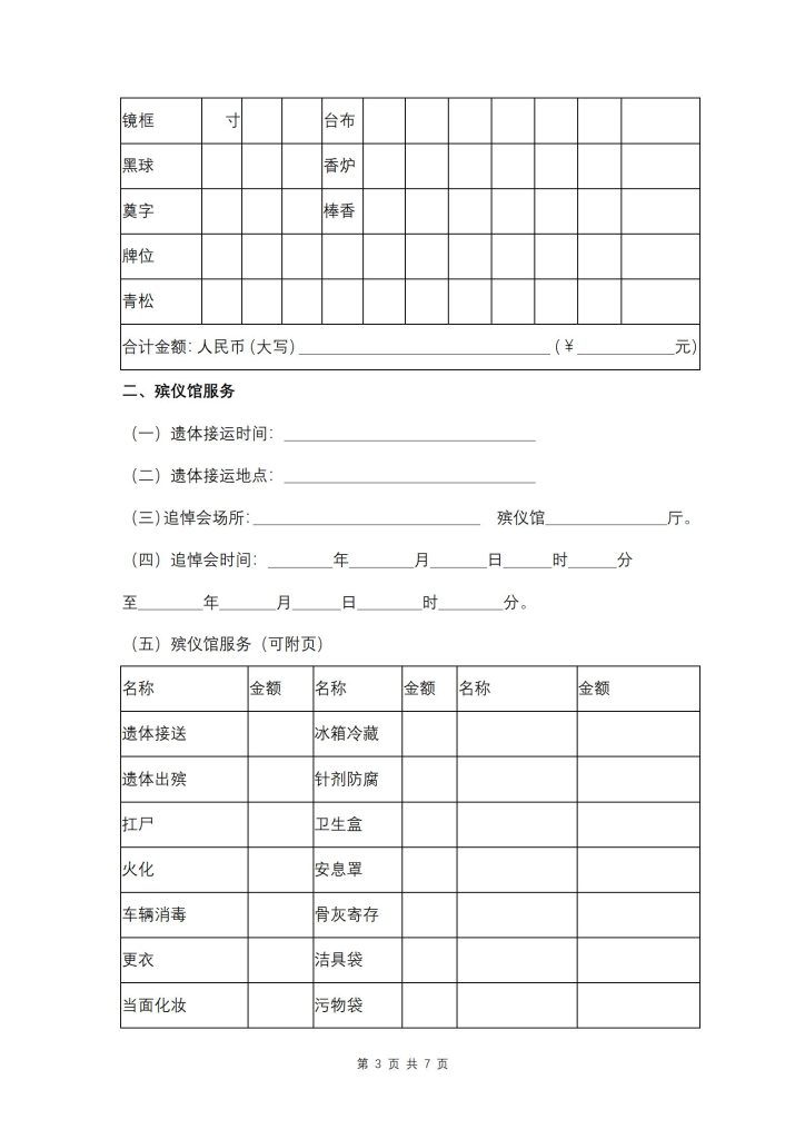 三、如选择殡仪馆服务项目,甲方应于 年 月 日前付清殡仪馆服务费用。